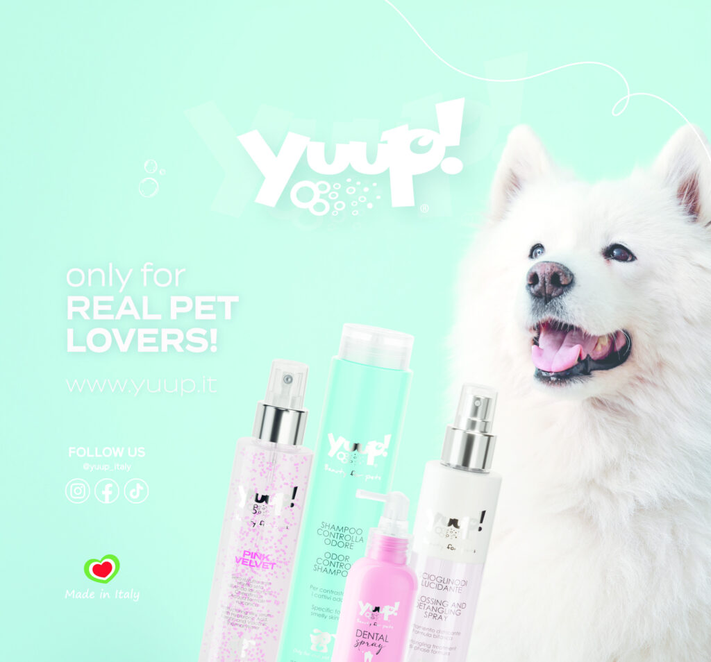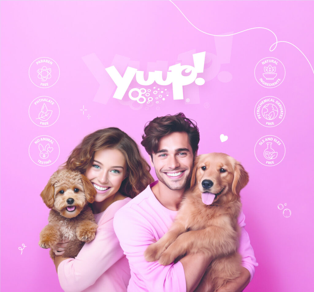 Yuup! PROFESSIONAL -sarjan ihana herkän ihon shampoo koirille ja kissoille. Vegaaniystävällinen resepti pohjautuu luonnollisiin aineosiin ja