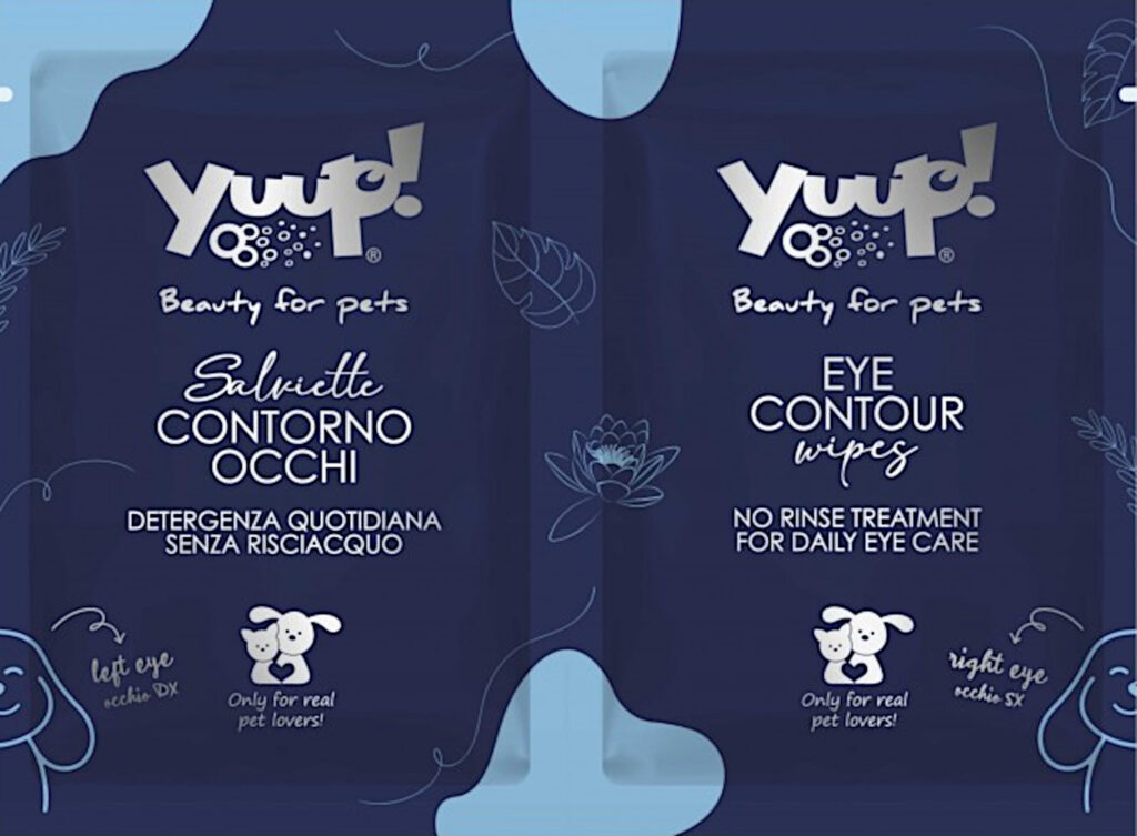 Yuup! silmänympäryspyyhkeet koirien ja kissojen silmänympärysalueen vaivattomaan ja turvalliseen puhdistamiseen. Pyyhkeet on valmistettu luonnollisesta puuvillasta ja kostutettu muunmuassa teepensaan ja lootuskukan lehtiuutteella, jotka rauhoittavat ja virkistävät herkkää kasvojen aluetta. Silmäruohovesi rauhoittaa punoitusta ja suojaa silmiä ulkoisilta ärsykkeiltä.